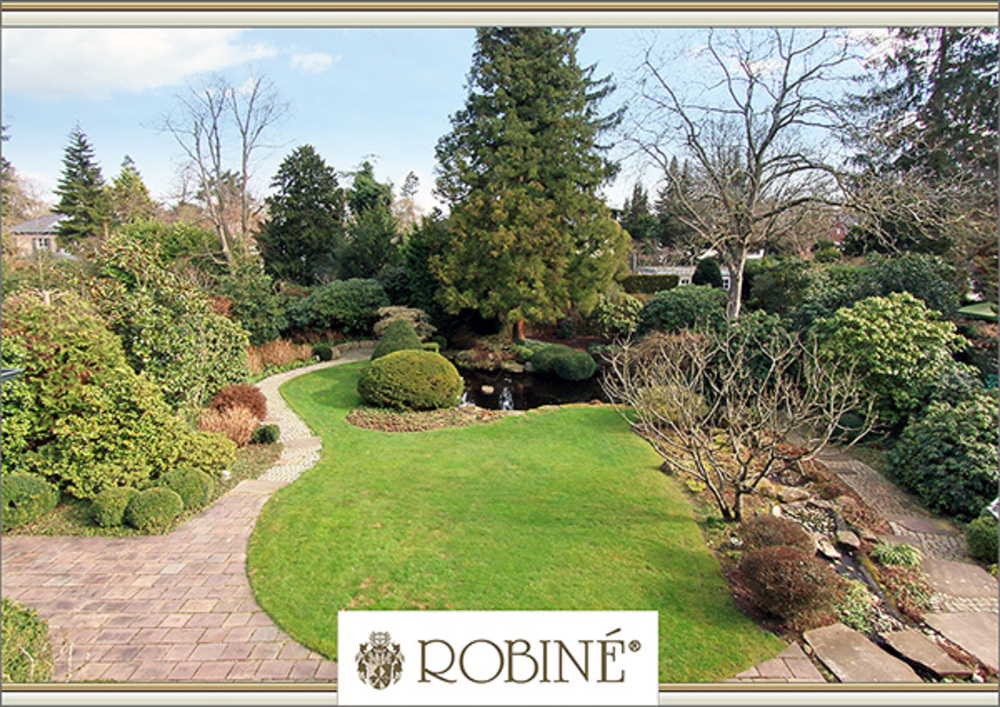 - aufwendig gestalteter Garten mit alteigewachsenem Baumbestand, Wasserlauf und Teichlandschaft